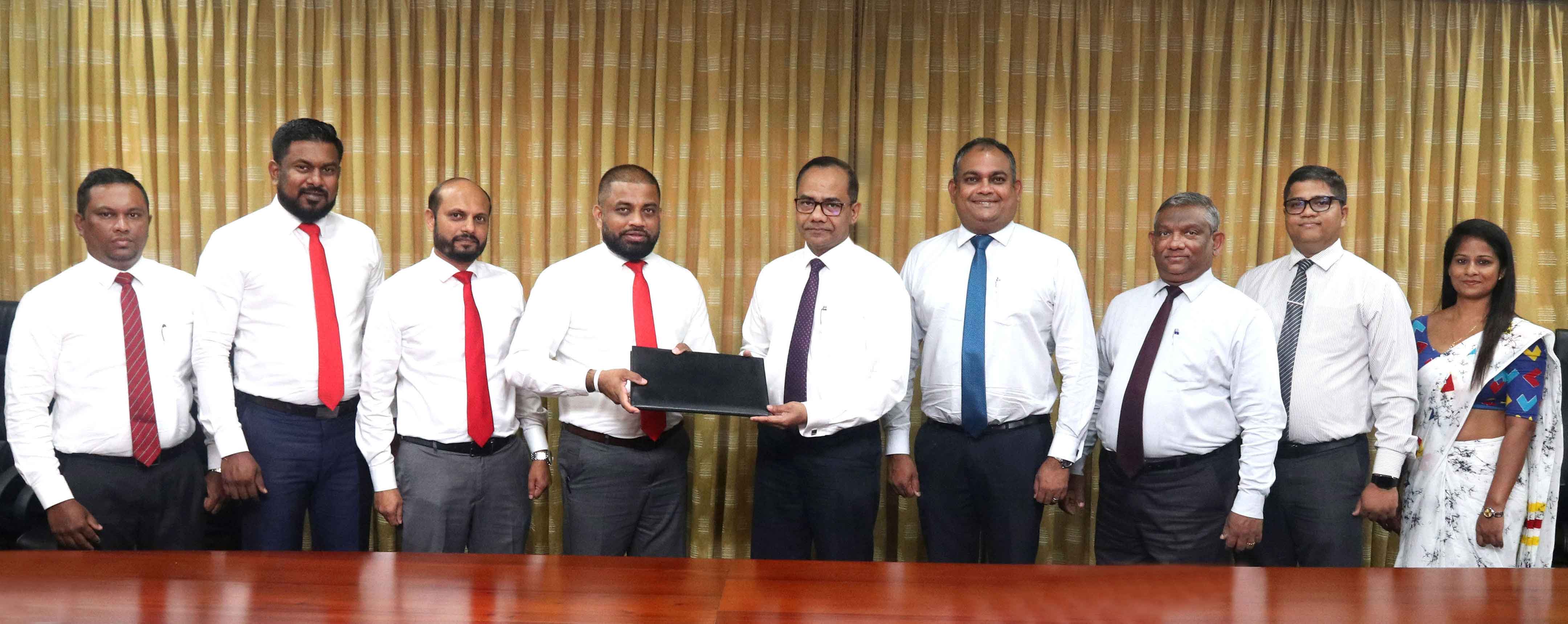 Commercial Bank’s Chief Operating Officer Mr S. Prabagar exchanges the MoU with the Chief Operating Officer - Agriculture and Heavy Machinery Cluster of Brown & Co. Mr Sanjaya Nissanka in the presence of Browns Agriculture Head of Sales Mr Thushan Nilanka, Head of Operations Mr Chanaka Chandrasekara and Deputy General Manager Mr Niyas Ahamed and Commercial Bank’s Deputy General Manager - Retail Banking and Marketing Mr Hasrath Munasinghe, Deputy General Manager - Personal Banking Mr Delakshan Hettiarachchi, Product Manager - Personal loans Mr Gayan Wijesinghe, and Executive officer – Retail Products Department Mrs Chandri Premaratne.