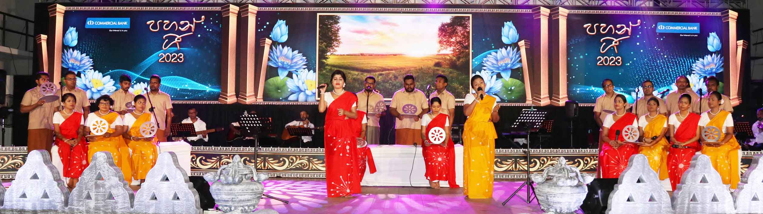 The Commercial Bank of Ceylon recently celebrated Poson with a traditional ‘Pahan Gee’ recital performed by a 30-member choir comprising of staff of the Bank. The event held at the Navarangahala, was attended by many present and past staff members and their families. Representatives of the Bank’s corporate and senior management, including Chairman Prof.Ananda Jayawardane,Managing Director/ CEO Mr Sanath Manatunge and several directors graced the occasion.