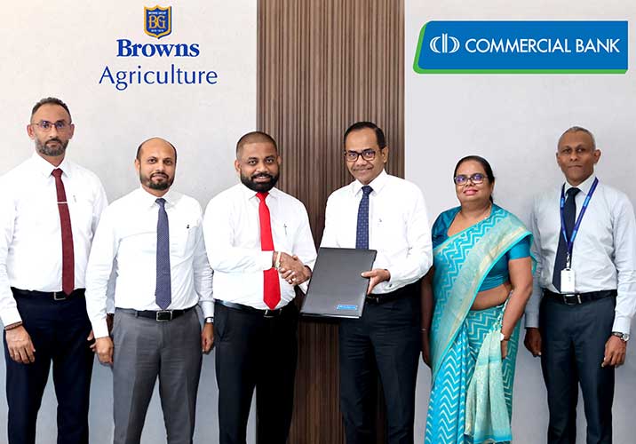 Under the agreement, Commercial Bank will offer special leasing facilities through its Agri Lease and Diribala Green Development Loan Scheme to support the purchase of agricultural vehicles, machinery and equipment, protected agriculture and irrigation systems, and post-harvest machinery marketed by Browns Agriculture.