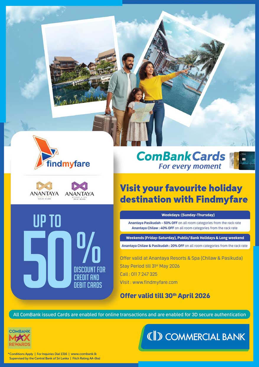 - The offer is valid for Sri Lankan citizens and expatriates holding valid ComBank Cards.