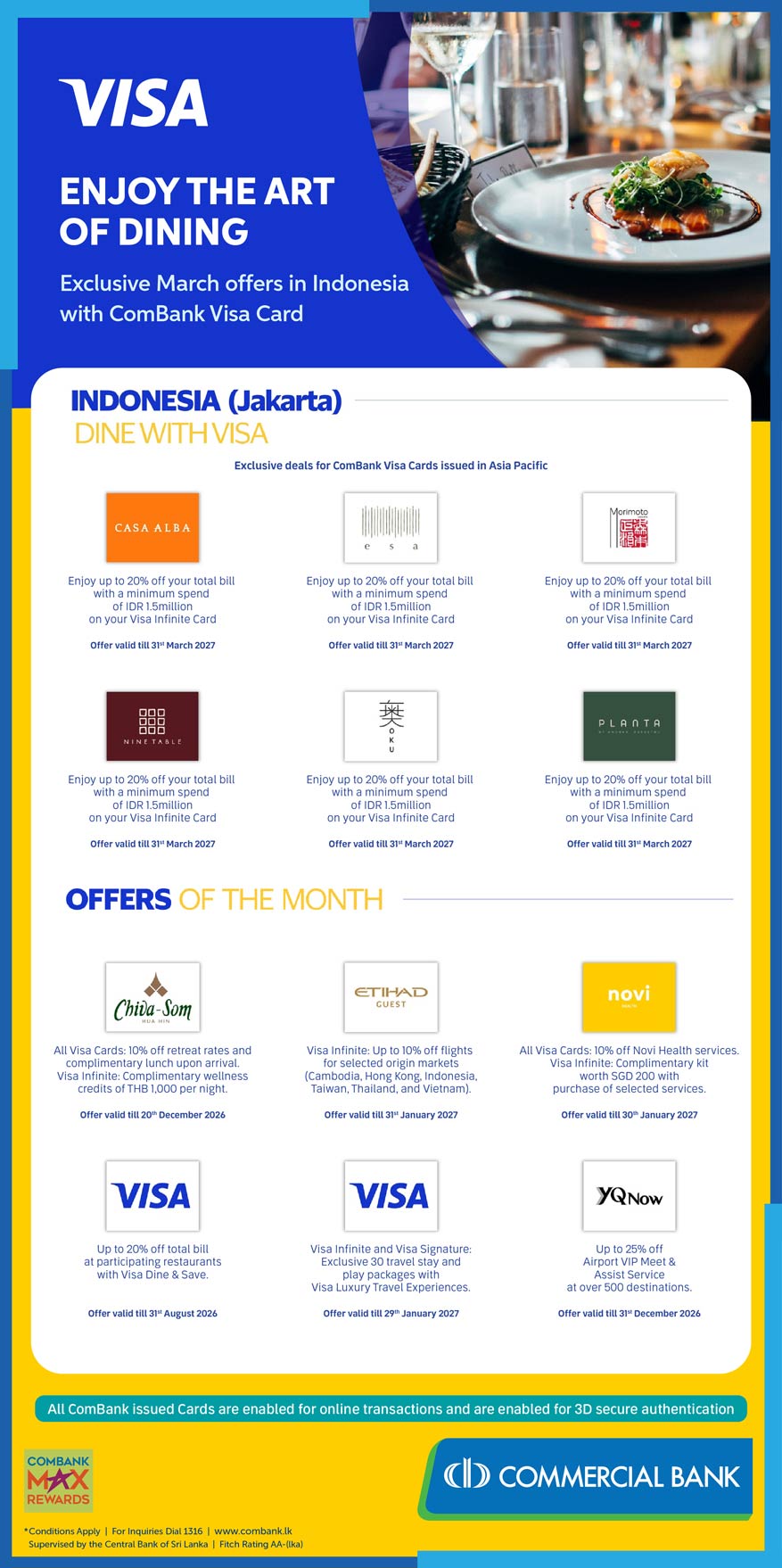 - The offer is valid for Sri Lankan citizens and expatriates holding valid ComBank Cards.