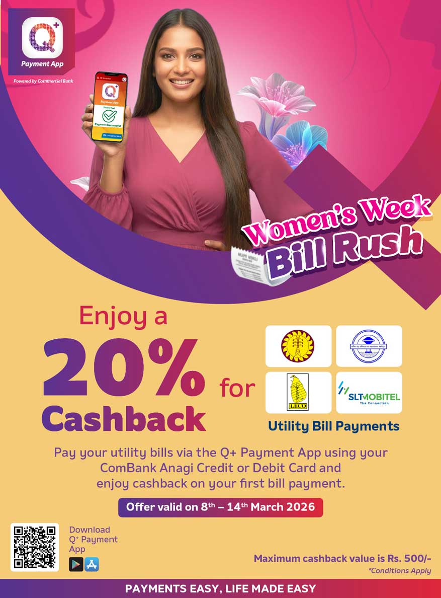 This Cashback offer is valid for the transactions performed through Q+ Payment App using the ComBank Anagi Credit Cards &Debit Cards.