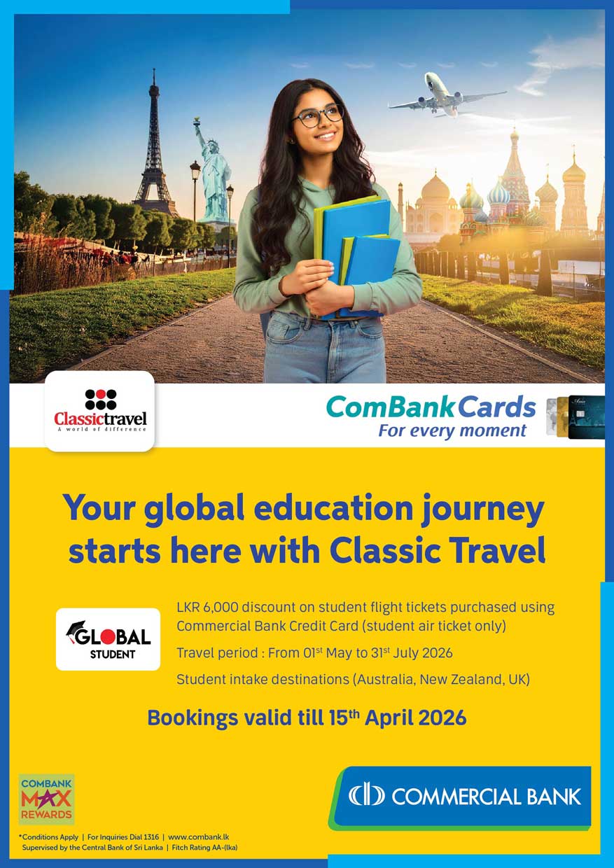 - Offer – Enjoy LKR 6,000/- discount on Student flight tickets for ComBank Credit Cards